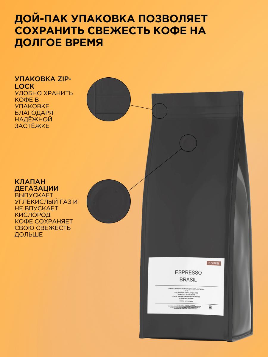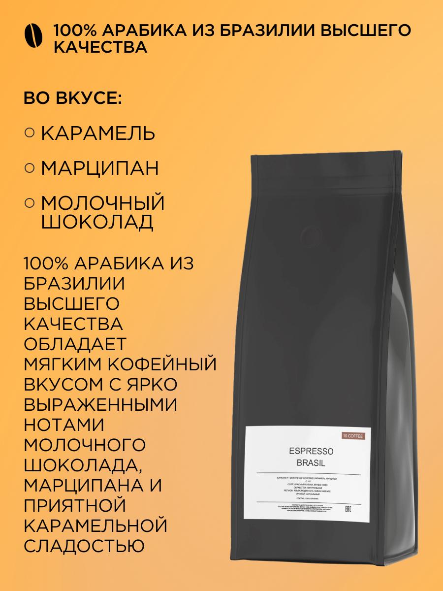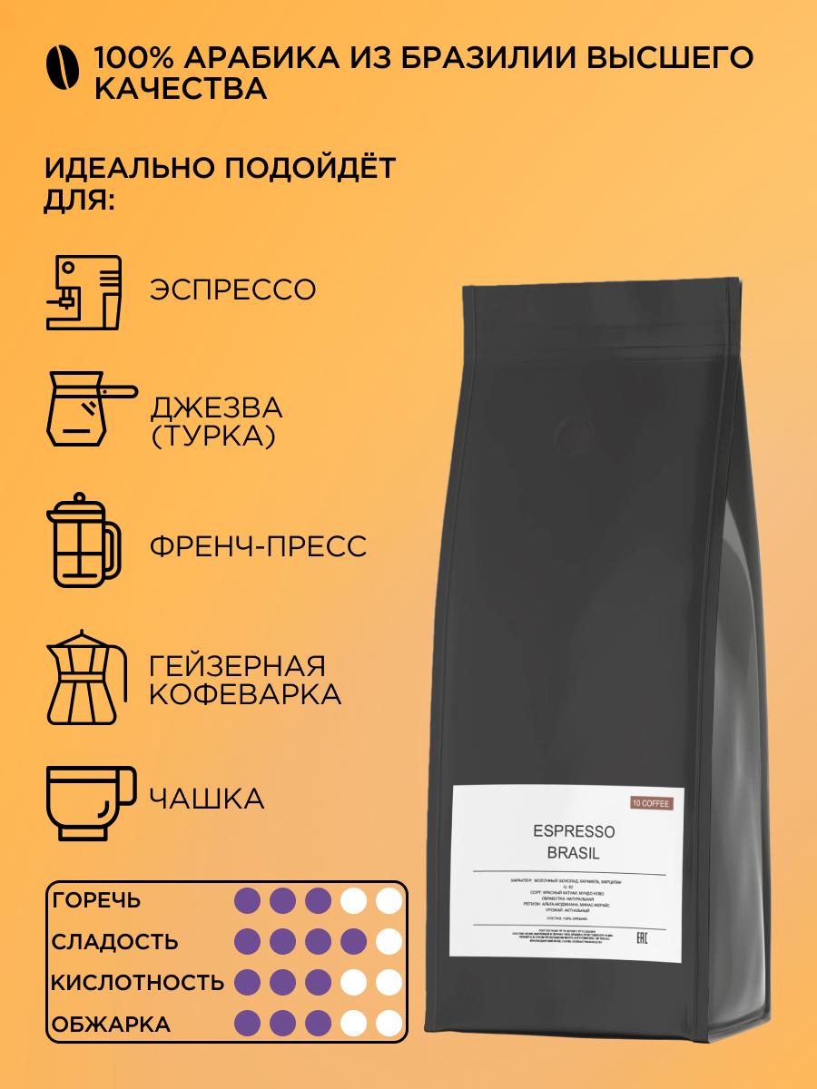 Кофе в зернах Brazil - беспроигрышный вариант классического кофе из Бразилии, 100% арабика высшего качества средней обжарки. Он подходит для приготовления как на кофемашине любого типа, так и в турке, гейзерной кофеварке, чашке и т.д. - всё ограничивается вашими предпочтениями. Во вкусе Brazil - ноты карамели, марципана и шоколада. Благодаря средней обжарке кофе отлично сочетается с молоком и так же хорош в эспрессо. Он подойдёт ценителям, которые ищут в кофе весь спектр вкуса - от цитрусовой кислинки и карамельной сладости до горечи натурального шоколада и жареных какао бобов, все вкусы идеально сбалансированы и в итоге вы получаете лучший эспрессо. Благодаря свежести обжарки, герметичности дой-пак упаковки с обратным клапаном, который выпускает излишек углекислого газа и предохраняет зерна от воздействия кислорода, вы получаете кофе первой свежести с ярким, насыщенным вкусом. Рекомендации по хранению и употреблению: Для достижения наилучших результатов, храните кофе в сухом и прохладном месте, подальше от прямых солнечных лучей. Рекомендуем использовать свежемолотые зерна и готовить кофе непосредственно перед употреблением, чтобы ощутить всю глубину его вкуса. Характеристики: Сорт: Красный Катуаи, Мундо ново Оценка: Q82 Обработка: Натуральная Регион: Альта-Моджиана, Минас-Жерайс Урожай: Актуальный Обжарка: Средняя Классический вариант для вашего эспрессо в кафе или дома. 10Coffee – небольшое кофейное производство в самом южном регионе России. Мы с особым вниманием подходим к выбору сырья, контролируя его качество на протяжении всего пути от фермы и до нашего производства. Мы обжариваем кофе на новейшем оборудовании, тщательно и кропотливо подбирая лучший профиль обжарки, который максимально раскроет весь букет вкуса и аромата. Наша цель – поделиться с Вами удивительным миром и вкусовым многообразием кофе. Мы не делаем шаблоны, мы создаем свой уникальный продукт. Условия хранения Хранить в сухом прохладном месте температура не выше +25С и относительной