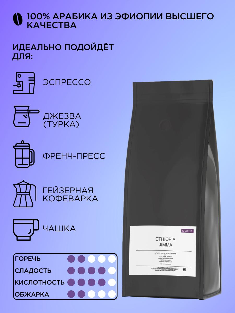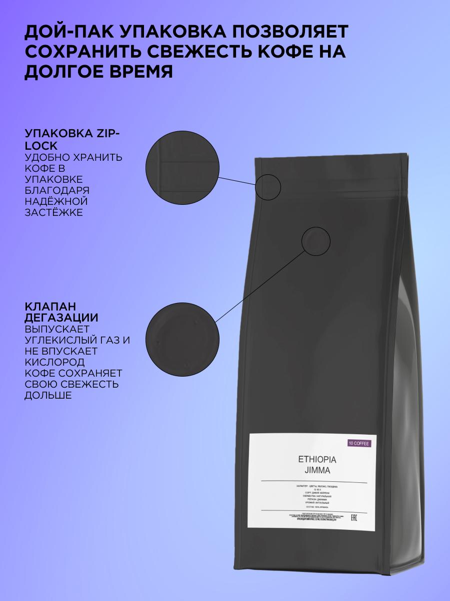 Кофе в зернах Ethiopia Jimma - классический вариант для вашего эспрессо. Он подходит для приготовления как на кофемашине любого типа, так и в турке, гейзерной кофеварке, чашке и т.д. - всё ограничивается вашими предпочтениями. Во вкусе Ethiopia Jimma - гвоздика, цветы, яблоко и какао, средняя кислотность и сладость и низкая горечь. Благодаря средней обжарке кофе получается с ярким, насыщенным вкусом, ароматом и балансом вкуса. Он отлично подойдёт тем, кто любит мягкий вкус эспрессо с ярким ароматом. Благодаря свежести обжарки, герметичности дой-пак упаковки с обратным клапаном, который выпускает излишек углекислого газа и предохраняет зерна от воздействия кислорода, вы получаете кофе первой свежести с ярким, насыщенным вкусом. Рекомендации по хранению и употреблению: Для достижения наилучших результатов, храните кофе в сухом и прохладном месте, подальше от прямых солнечных лучей. Рекомендуем использовать свежемолотые зерна и готовить кофе непосредственно перед употреблением, чтобы ощутить всю глубину его вкуса. Характеристики: Оценка Q: 82.5 Сорт: Дикий Хейрлум Обработка: Натуральная Регион: Джимма Урожай: Актуальный Обжарка: Средняя Классический вариант для вашего эспрессо в кафе или дома. 10Coffee – небольшое кофейное производство в самом южном регионе России. Мы с особым вниманием подходим к выбору сырья, контролируя его качество на протяжении всего пути от фермы и до нашего производства. Мы обжариваем кофе на новейшем оборудовании, тщательно и кропотливо подбирая лучший профиль обжарки, который максимально раскроет весь букет вкуса и аромата. Наша цель – поделиться с Вами удивительным миром и вкусовым многообразием кофе. Мы не делаем шаблоны, мы создаем свой уникальный продукт. Условия хранения Хранить в сухом прохладном месте температура не выше +25С и относительной влажности воздуха не более 75%. Состав 100% Арабика